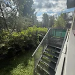 Une cuisine équipée est présentée avec un micro-ondes et un réfrigérateur pour l'utilisation des clients. L'arrêt de bus Magellana se trouve à quelques mètres de ce logement.